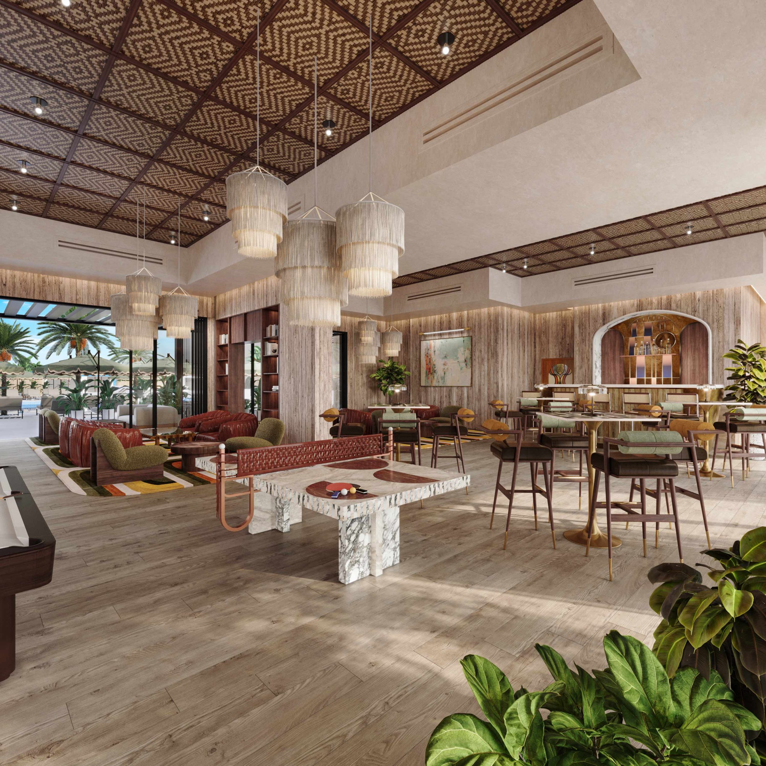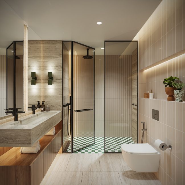 Residents can enjoy indoor and outdoor gyms, indoor and outdoor cinemas, sunken lounges, an infinity swimming pool, a kids' play area, BBQ areas, coworking spaces, a library, and F&B services managed by La Cantine.
